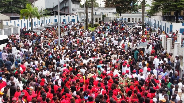 The crowd, largely members of his disbanded political group, the Simplified Movement, had mobilised from the 23 local government areas under the directives of their leaders.