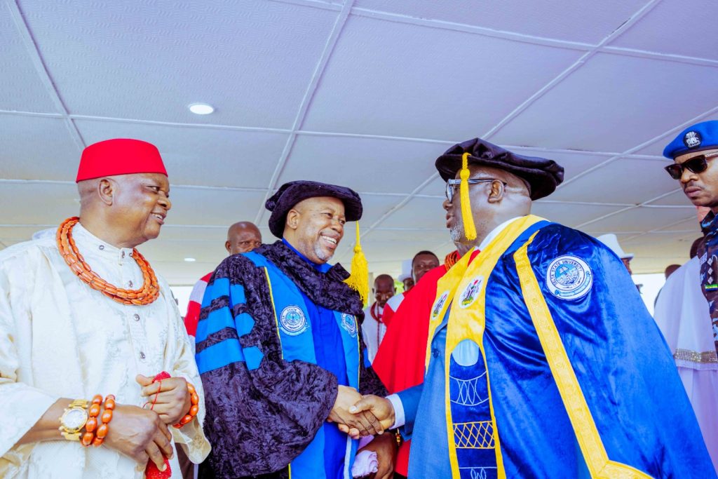 At the ceremony, Prof. Chukwuemeke Peter Aloamaka was decorated as Professor Emeritus of the university, recognising his outstanding accomplishments as an academic scholar and administrator. At the same time, former Minister of Information, Prof. Sam Oyovbaire, was formally conferred with the Honorary Doctor of Letters of the university.
