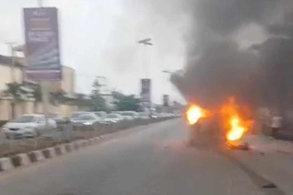 Lekki Crash: Vehicle Catches Fire After Multiple-Car Collision