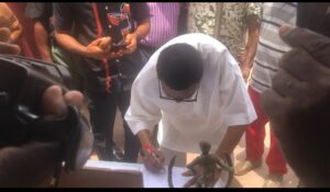 H.E Sen. Jim Nwobodo during the signing of condolence register at late Christian Chukwu’s residence