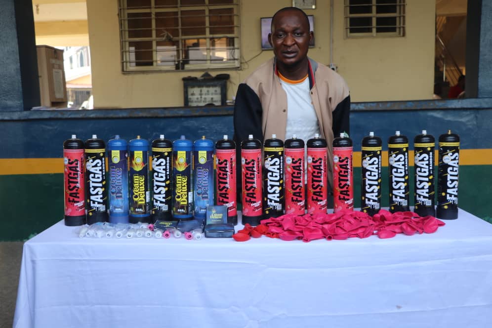 The Federal Capital Territory Police Command has arrested a 27-year-old dispatch rider, Magaji Adamu, for allegedly transporting multiple cartons of nitrous oxide, commonly known as “laughing gas,” suspected to be intended for illegal use.