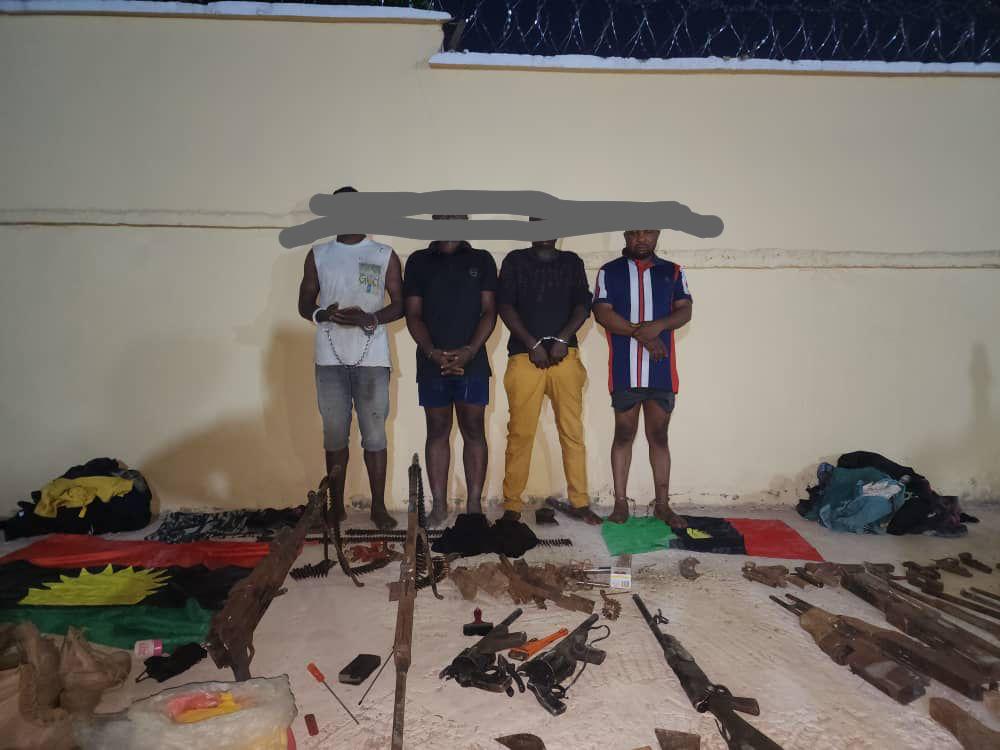 “The combined team also recovered 21 military desert boots, eight pairs of military raincoats, three IPOB/ESN flags, a first aid box, six cutlasses, two knives as well as bags of rice and garri. The camp was subsequently destroyed.”