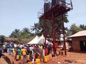 People of Imilike queuing to fetch water from the newly inaugurated solar-powered borehole.